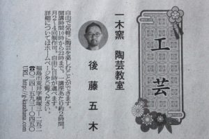 『 一木窯 陶芸教室 』 を掲載していただきました!!